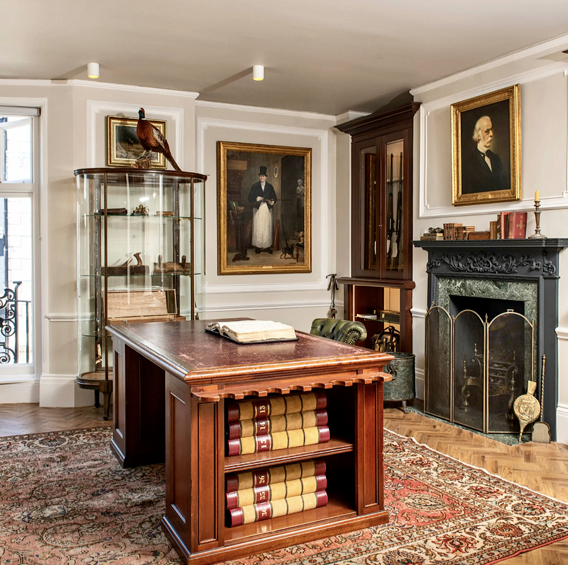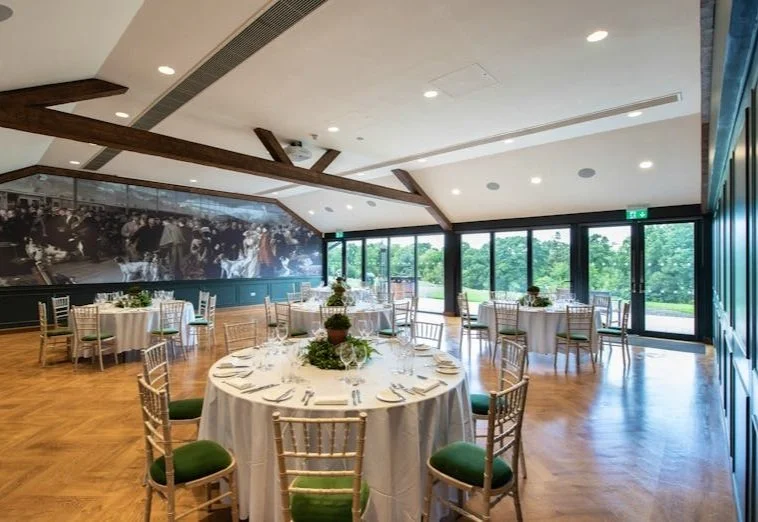 Refurbishment of the Holland and Holland event spaces at their Northwood, shooting grounds in London. Flanking both ends of the space we used these large murals of passengers travelling to a shoot. These spaces are used for their weekly events and as an extension to the dining room. We used the companies classic dark green shade throughout the space and on the paneling.